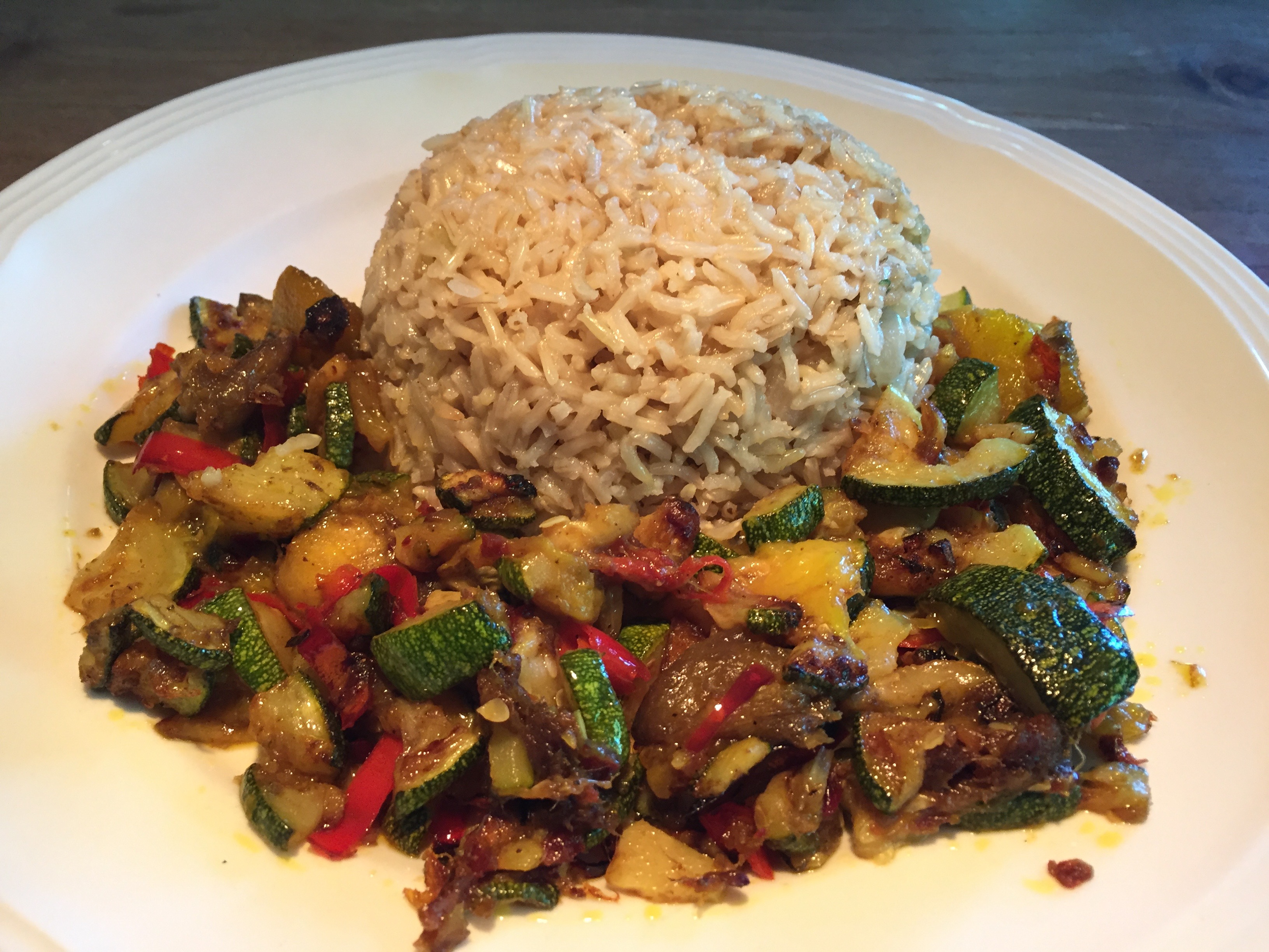 In the meantime the rice was done, so ready to place it on a plate and float of to the tropics. I must say the flavors worked so good together, that for a short while I actually did picture myself there!